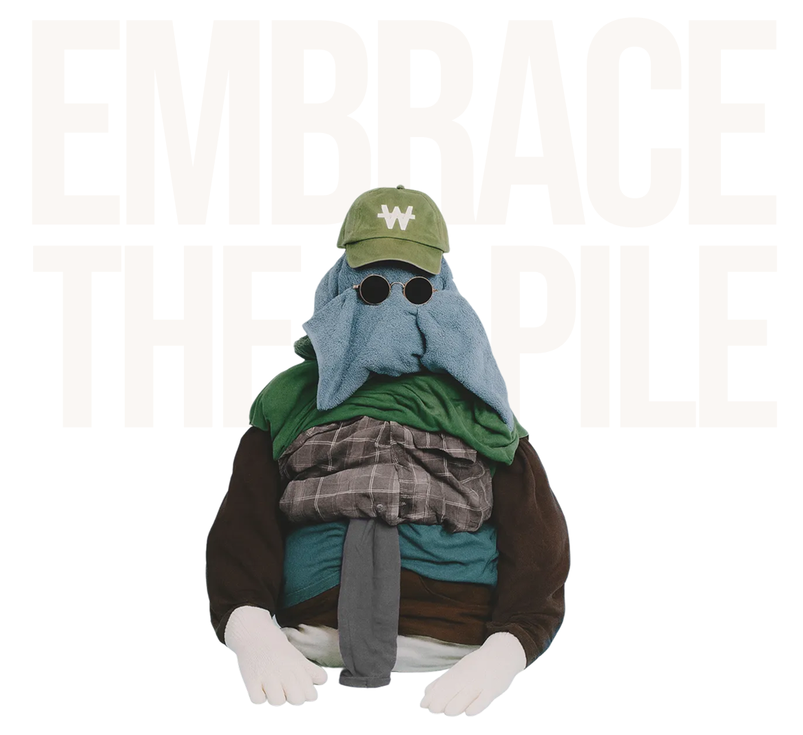 The pile exists because most things can be worn more than once. And because overwashing damages fibers, fades color, and ruins fit. (Plus, who has the time for laundry?)
